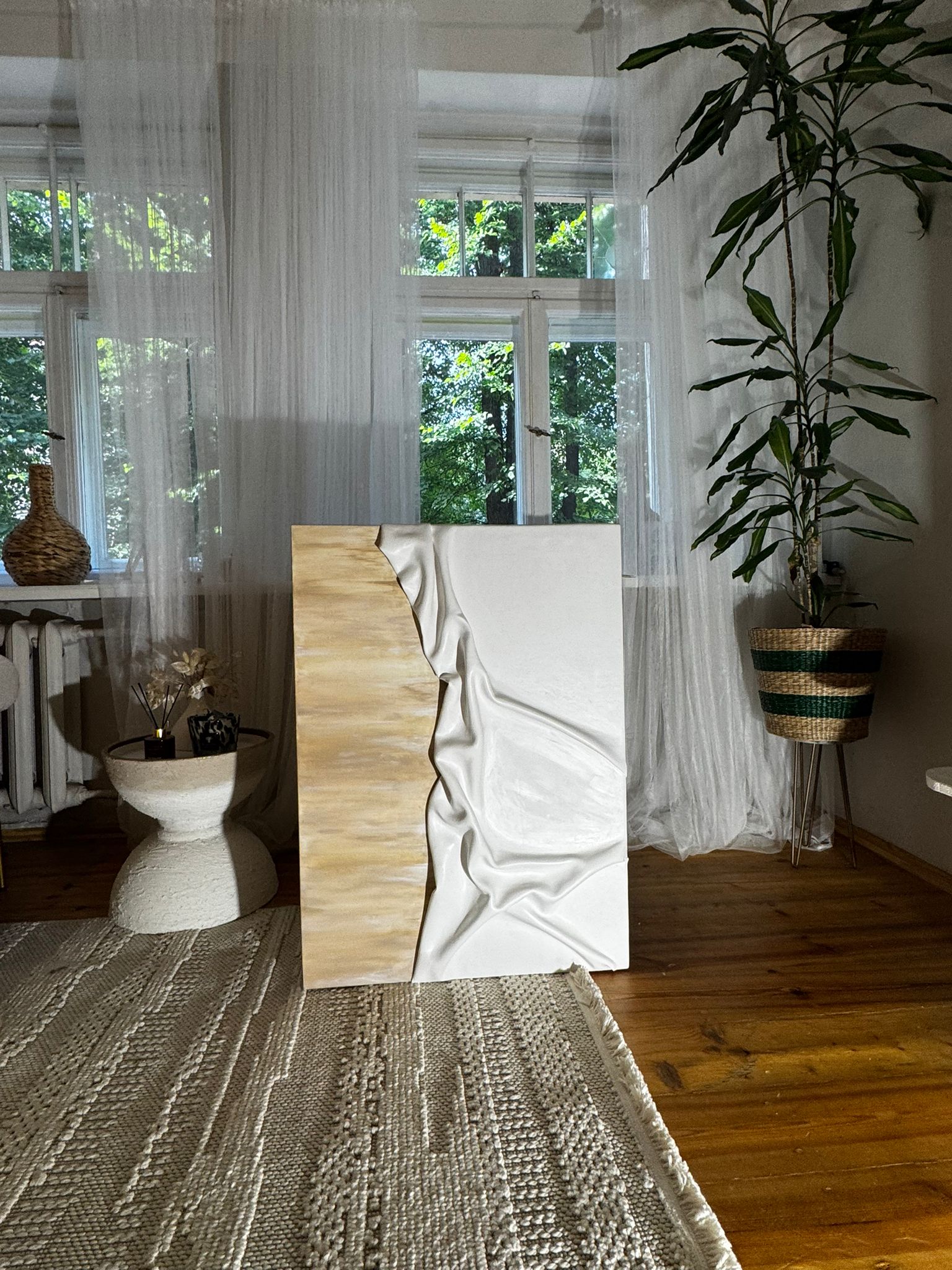 I am fascinated by organic, abstract pieces that invite viewers to feel, explore, and reimagine art. As an artist, I aspire to merge my passion for interiors and art, creating pieces that allow your space speak for itself. I seek to push the boundaries of my imagination, often incorporating everyday items and novelty materials, while aspiring to create art that can be hung in any orientation.